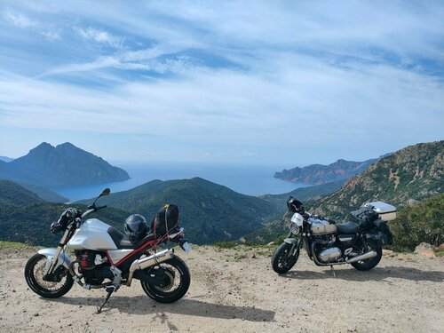 Beau mini séjour en Balagne avec mon ami Guzziste .Routes trés sales et glissantes, on a failli se vautrer tout les deux mais c'était magnifique.