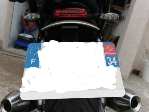 18. Pour clôturer la modif plaque les photos du montage. L'éclairage de plaque passe à environ 8 mm du garde boue. Ne pas oublier d'étancher (joint silicone) au niveau du coup de scie (on ne voit pas sur les photos) afin d'éviter que l'eau ne pénètre. Bon travail à ceux ou celles qui veulent faire la modif.