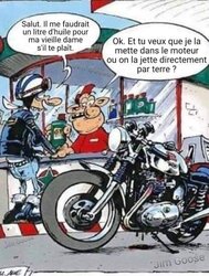 2. C'est sûr on y passera quand une autre histoire. Comme tu le dis même certaines machines, neuves seront recalée. Les constructeurs affutent une machine à l'import pour avoir le barré rouge de conformité et après se lâchent un peu sur la série. En tout cas bon courage aux futurs contrôleurs CT car entre une machine moderne ou il faut appuyer sur un bouton pour démarrer et une “mamie caractérielle"(du genre Norton commando / XR Honda / 900 MHR Ducati....) qui demande un coup de "jarret technique" ce n'est pas la même histoire. Je suis de la génération kick et des fois c'est du brutal ! Cela fera du chiffre d'affaire aux kinés un trou dans dans la caisse de la sécurité sociale... Le malheur des uns fait le bonheur des autres !