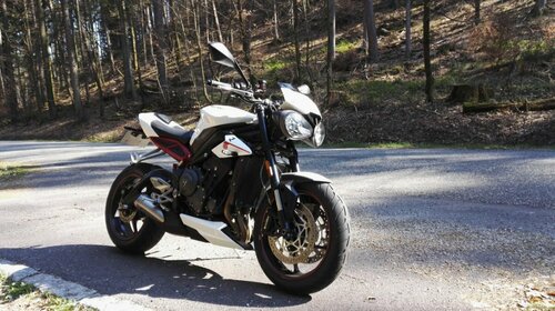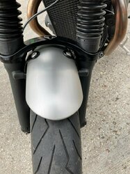Moi aussi, je suis victime du couinement au freinage. (J'avais amené ma fille en passagère et elle s'est bien foutue de ma gueule en me disant qu'elle avait l'impression d'entendre un vieux vélo de grand mère ! Bref ...). A la concess de Strasbourg, ils m'ont confirmés qu'elles le faisaient quasiment toutes ! Sinon, j'avais vu un commentaire sur une page Facebook en anglais qu'un gars avait résolu le truc en montant le rigidificateur de fourche Triumph ref. A2041204. Du coup, j'ai essayé de m'en procurer un pour tester (et ça rigidifie bien la fourche également à ce qu'il parait) mais venant d'Angleterre, la disponibilité est aléatoire. Donc ??? -