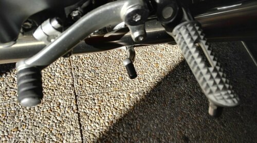 Petite astuce pour ceux qui ont du mal à atteindre la béquille latérale selon le type de botte que l'on possède. J'ai percé et taraudé M5 l'embout sphérique. J'y ai mis une petite vis (avec du frein filet) sur laquelle j'ai rajouté un bout de durite. C'est tout simple à réaliser !! -