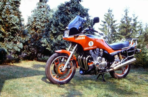 Avec quelques photos, ce sera plus parlant. La Z650, 3 jours avant le bisou au tracteur La même réparée et transformée en Godier-Genoud La GPZ 550, le jouet ! La CX 650 ( Erreur de casting, je n'ai pas aimé du tout, moteur sympa, mais partie cycle et tenue de cap bizarre) La 900 XJ, une des meilleures motos que j'ai pu posséder ! La FJ 1200 La FJ attelée au Comanche. C'était le pied cet engin ! Qu'est ce que j'ai pu m'amuser avec ce side !!! La XS 750 que j'avais ressuscitée. Ma première T3, une 750 Trident La 900 Daytona. La plus belle ! La 900 Trident que j'ai gardée 20 ans !! La 900 Trident verte récupérée "en kit" La même Trident après restauration et "mise à ma sauce" la Street Triple R
