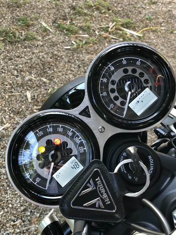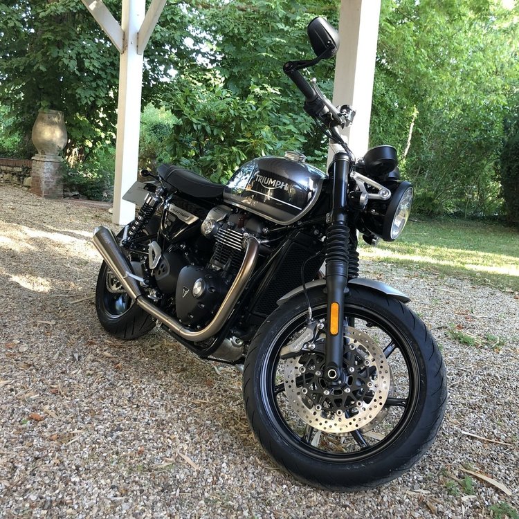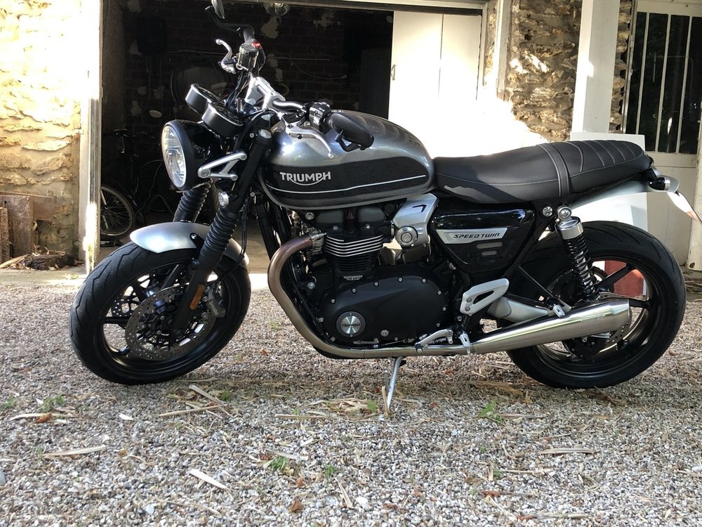 L'attente est finie... ou presque! Je l'ai depuis mercredi mais je pars ce soir pour 4 semaines en la laissant au garage. Pour répondre à ta question, ma moto de tous les jours doit offrir un minimum de protection, sans pour autant être complètement carénée façon RT. J'aime sentir le vent et les éléments mais pour faire près de 80km chaque jour aller-retour dont la moitié sur autoroute, été comme hiver, je trouve le roadster un peu fatiguant. Et surtout, il me faut un gros top case pour trimballer tout mon bazar. Et là franchement, c'est déjà moche sur n'importe quelle moto mais sur une Speed Twin, on frôlerait le crime contre l'humanité. Et puis, accessoirement, j'ai envie de garder cette moto longtemps, et même de la transmettre (ma fille de 14 ans la regarde déjà avec amour). Alors que la moto taf, elle se prend 15,000km par an et je la change tous les 12-24 mois.