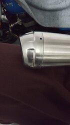 Avertissement ! Si vous vous lancez dans la manip attention au diamètre des rivets. Les perçages sur le pot sont de 5mm, au départ je voulais mettre des rivets de 4,8 mais j'ai eu peur de ne pas avoir un alignement parfait entre les trous après emboitage. J'ai donc pris du 4mm mais malheureusement les rivets inox ne travaillent pas comme des rivets alu. Ils ne s"éclatent pas mais gonflent simplement. Donc mes rivets de 4mm après écrasement faisaient 5mm maxi et n'assuraient pas le serrage. J'ai donc recommandé des rivets inox de diam 4,8 et de longueur 8mm. Réception sûrement après Noël. Je vous dirai quoi... -