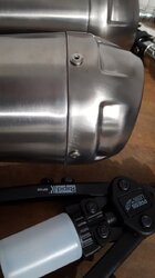 Ça y est les tubes Shogun gros diamètre sont commandés, de vrais anciens pas une merde made in PRC ou équivalant. Je vais sûrement faire sauter mes filtres camembert pour des cornets et mettre des colliers à grandes ailettes au niveau de la culasse. Bref voici un aperçu du montage (ce sont les pots commandés) -