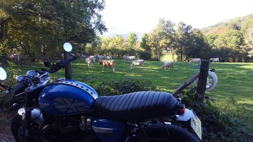 Vercors lundi dernier. Tunnel des Ecouges, qq dizaines de km de routes forestières (gravillons et herbe au milieu) remonté sur Malleval, etc, etc J'ai pris la p'tite vieille et mon p'tit neveu ma ST. D'ailleurs ça lui a donné l'envie d'en acheter une... Je suis rentré cassé. Il est vrai qu'en plus de cinquante ans il y a eu qq progrès.