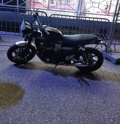 Tant pis, merci , je crois qu on a la même maladie.....toutes les bréles nous plaisent donc le seul moyen c est de changer souvent....(heureusement qu on fait pas pareil avec nos femmes ), chez moi ,la maladie progresse bien , j ai 5 motos en ce moment.....dont une pour ma femme . La speed va subir quelques transformations.......peut être un guidon beach type slim, des caches latéraux scrambler baak, des pots mecatwin......que je viens d acheter d occase à 150 euros, et pour finir des pneus à crampons....esprit scrambler quand tu nous tiens !! (Faudra que je pose une grille de phare tiens...)