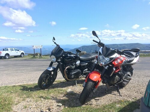 Petite balade aujourd'hui avec le fiston, direction le mont Aigoual, 250kms dans l'après midi, route super sympa en passant par Ganges, mais parti du niveau de la mer à 1567 mètres d'altitude, gla gla les doigts avec les gants d'été!!! ça ma permis de passer les 11000 bornes.