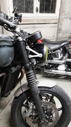 Slt J ai ça a Vendre Noir brillant C était sur une thruxton que je viens d acheter Ça monte aussi sur speed twin Piece triumph 130euros Message édité par moi même Je viens de retrouver la facture triumph si besoin je peux la faire voir Neuf c est 170 € je revois donc mon prix à 110 € pour un mendre d'ici