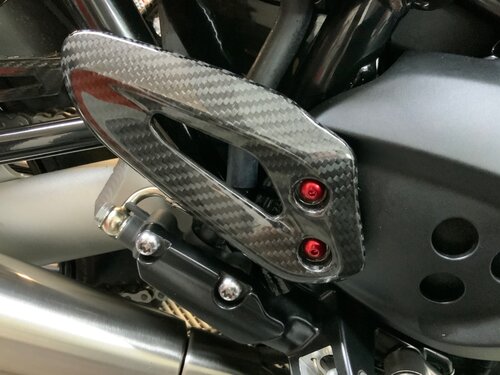 Suite des modifications, remplacement des caches injections par des modèles en Carbon et vis anodisé rouge. Voilà la suite au prochain numéro