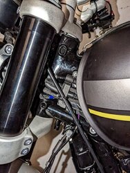 J'ai mis des rehausses avec rapprochement de chez Voigt. J'ai aussi ajouter une rallonge pour le frein avant toujours de chez Voigt. https://voigt-mt.de/Triumph-Speed-Twin https://voigt-mt.de/3cm-brakehose-or-clutchhose-extension-adapter-universal-CNC-milled