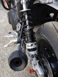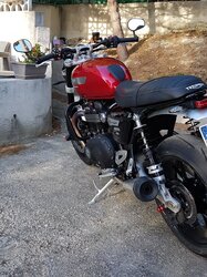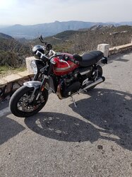19. Salut les motards, voilà j'ai fait le choix de changer les amortisseurs du speed suite à ma première sortie avec mon épouse, être secoués comme un yoyo car pas assez d'hydraulique, puis les amortos qui talonnes sur les butés au passage des dos d'ânes et vibromasseur quand tu passe sur des revêtements trop dégradé, STOP POUR NOUS j'ai commandé des EMC custom black 2. LE speed twin 1200 (rouge) et à 14295 euros maintenant et quand tu rajoute 1000 euros d'amortisseurs on est à 15295 cher le speed twin, après c'est vrais que quand on aime on compte pas.