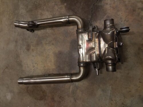 Merci ! par contre dite moi si je me trompe mais je crois comprendre en lisant le post qu'il y a un cata dans les silencieux eux même ? Je m'attendais à avoir une simple chicane pour limiter le bruit. J'avais cru comprendre que l'ensemble des cata étaient supprimés via ce genre de kit (euro 5 incluant les 2 midpipe en plus du Xpipe) du coup j'en déduis que je me fourvoyais. les midpipe ne sont inclus dans ce kit qu'a cause du fait que le cata euro 5 est soudé aux midpipe... cata euro 5 : du coup merci à Cyder de son retour... ma conclusion est qu'il est difficile de toucher aux pots d'origines sans avoir de matos pour souder, un trépan sacrificiel et une paire de silencieux de rechange pour passer le CT... Pas sur que ça vaille le coup ! -