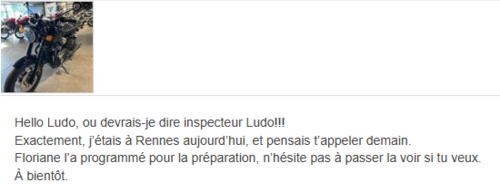 J'ai comme l'impression que l'on voit ma RS au fond à droite , je reconnais les bonbonnes d'amortisseurs et le réservoir noir rayé dessous .. Ca rend dingue ces trucs là Je peux me tromper .Le temps de faire la carte grise , la plaque et monter les options .Bref patience ... -