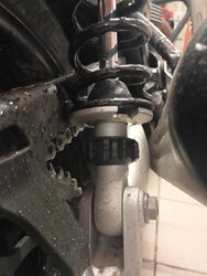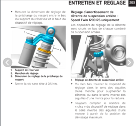 Voici le bas de l'amortisseur ..Voir le pdf en ligne , il me semble que tout est détaillé .. J'ai fais ma première révision ce samedi soit 120 kms sous la flotte aller/ retour J'ai juste regraisser la chaine en arrivant .. https://www.modesdemploi.fr/triumph/speed-twin-1200-rs-2025/mode-d-emploi -