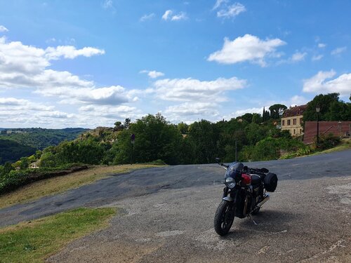 Allez la foule en délire... 2-3 tofs prises sur l'aller et le retour. Quel bonheur à rouler et pas de trop de circulation hormis dans quelques secteurs pièges à touristes... Pour le trajet aller : Périgueux - Le Bugue - Belvès - Bonaguil donc du roulant pas droit Pour le retour : Sauveterre La Lemance - Prats du Périgord - Daglan - Domme - Sarlat - Les Eyzies donc du viroleux à souhait et Périgueux.