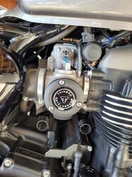 18. J'ai coupé le cache plastique derrière. Celui qui tient normalement le cache tps alu gris ou noir. J'ai fait ça avec une lame d'outil multifonction. J'avais posé la question sur un site de vente d'accessoires Triumph us qui m'avait donné le truc. Et j'ai vu sur un autre site ce cache monté sur une speed twin ce qui a fini de me convaincre que c'était ok. Et oui c'est très con de pas avoir de cache tps en option pour la speed twin Le genre de truc qui se vendrait comme des petits pains Surtout que les badges carter embrayage et alternateur assortis existent et sont identiques avec beaucoup d'autres modèles Triumph.