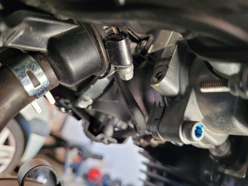 16. Ce tuto s'adresse à tous ceux qui souhaitent synchroniser les papillons de leur speed twin. l'objectif à ma connaissance est d'équilibrer l'arrivée d'air (et de carburant?) entre les 2 cylindres pour ce faire nous avons besoin du logiciel tuneecu pour connaître l'état actuel des 2 cylindres et voir comment évolue la situation au fur et a mesure du réglage jusqu'à ce que les valeurs soient identiques entre les 2 cylindres. Pour mon cas moteur allumé au ralenti et tuneecu connecté j'ai 600 sur un cylindre et 540 sur l'autre je ne sais pas exactement à quoi correspondent ces valeurs mais toujours est il qu'il convient qu'elles soient identiques à plus ou moins 10 Le réglage se fait via une clé hexagonale de 3mm qui ne doit JAMAIS restée insérée contact mis ou moteur allumé et ne jamais manipuler la poignée d'accélérateur non plus avec la clé en place autrement dit on met la clé en place moteur éteint et on ne touche à rien d'autre avant de l'avoir enlevée! Donc Côté droit on enlève le cache tps On détache ensuite la vis qui retient la durite qui passe devant la boîte du filtre à air (sur mon doigt) Ensuite on enlève la vis qui est marquée par un trait jaune. Clé hexagonale de 5mm de mémoire Avant Après : On insère dans de ce trou une clé hexagonale de 3mm dans le sens de la longueur jusqu'à ce qu'elle se bloque au fond. Si vous avez une clé torx de 20 cela fonctionne encore mieux parait il. Opération un peu pénible au début car il faut pousser la durite d'une main car elle passe juste devant le trou et trouver le point d'accroche de l'autre au fond du trou Vous devez sentir quand la clé est bloquée au fond et quand vous tournez que cela dévisse ou visse quelque chose. Dans mon cas j'ai du le faire en plusieurs fois. Un quart de tour dans le sens des aiguilles d'une montre puis j'enlève la clé hexagonale. Puis je démarre le moteur pour regarder les valeurs. Et cela plusieurs fois pour comprendre que dans mon cas le cylindre deux ayant une valeur plus élevée il fallait tourner la clé dans le sens inverse des aiguilles d'une montre! Donc petit à petit je tourne en contrôlant à chaque fois les valeurs jusqu'à ce que les 2 valeurs soient identiques. Ce qui veut dire enlever a clé hexagonale, démarrer la moto, contrôler les valeurs, arrêter la moto, remettre la clé hexagonale, la tourner et ainsi de suite. J'arrête là procédure je remonte le tout et maintenant c'est parfaitement synchronisé En espérant que cela puisse aider certains d'entre vous. Mes sources étant une vidéo youtube et un forum us il me semblait intéressant de partager ce tuto en français.