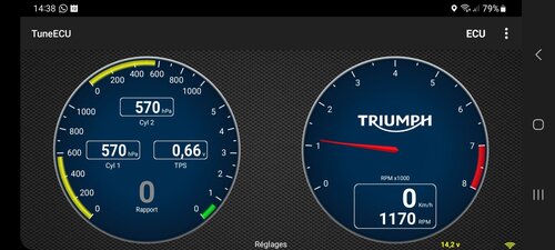 14. Il s'agit ici nullement d'un réglage extrême mais d'une opération de maintenance qui je pense doit être prévue dans les entretiens de ton bouclard Triumph ou dans le manuel d'atelier Triumph. Le fonctionnement des cylindres doit être le plus équilibré possible De la même manière dans le manuel Triumph il est indiqué qu'il faut ouvrir la centrale ABS lors de la purge des freins pour enlever le vieux liquide de frein qui est contenu dans la centrale. C'est au contraire quand tu le fais faire chez Dafy ou autre que la procédure n'est pas respectée. Enfin mettre la dernière Map à jour officielle Triumph doit également être prévue dans les révisions comme c'est le cas dans le monde automobile Tuneecu est simplement un outil pour le faire soit même qui s'appuie sur la norme obd2 qui équipe aujourd'hui chaque voiture et moto. On a la chance d'avoir un outil fait par un français, fiable dédié à notre marque c'est du luxe Je pense qu'on peut parler de tuning quand on commence à toucher aux cartographie personnalisées.